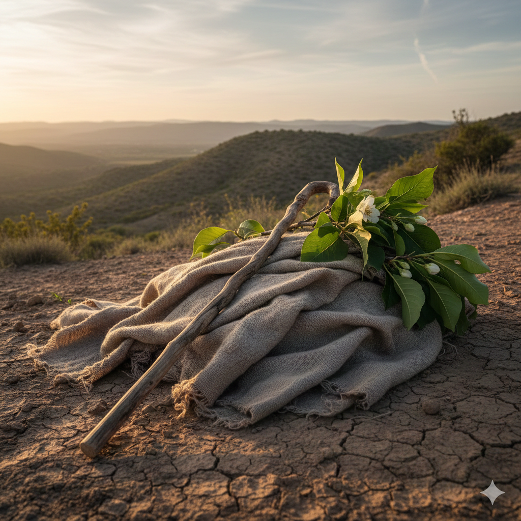 I saw a shepherd’s linen garment lying on the ground. A staff rested across it. Beside it was a branch - green, alive, full of leaves.